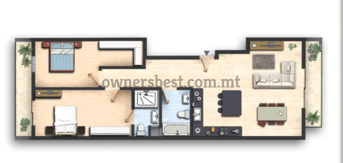 Larger than usual 2 bedroom APARTMENT, centrally located in Birkirkara, and consisting of an open plan kitchen/living/dining, leading to a front balcony, main bathroom, 2 good sized bedrooms, walkin, ensuite and a rear balcony. Being sold finished excluding bathrooms and internal doors. Optional car spaces available.