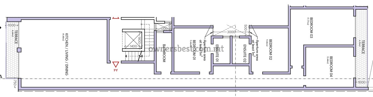 New block on the market in the central of Fgura to be sold finished exc bathrooms and doors. APARTMENT comprises of open plan kitchen/living/dining leading to a front terrace, bathroom, boxroom, 4 double bedrooms, 2 ensuites and a back terrace.