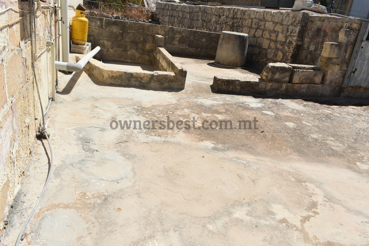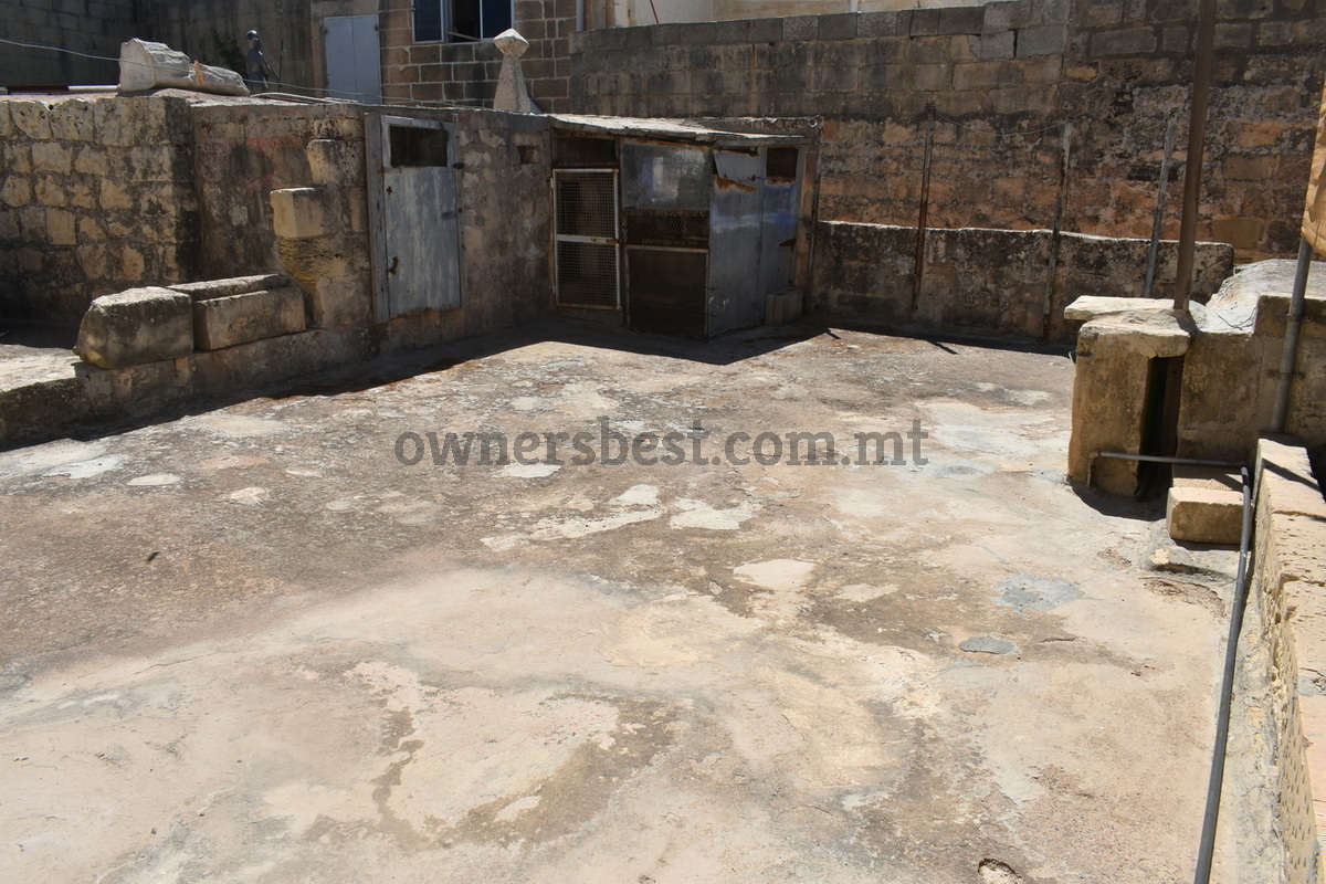 Corner HOUSE OF CHARACTER situated in a prominent area of the town having 3 separate entrances. Layout comprises of an entrance hall leading to a living area, separate dining room, 2 kitchens, 3 yards one of which one has ample space for pool, a cellar, 5 bedrooms and a terrace. This property also has full roof with ownership of airspace. Complementing this property is a street level 4 car interconnected garage. Freehold