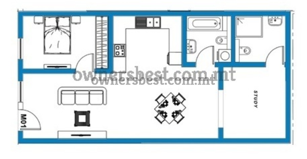 1 bedroom plus study MAiSoNETTE in Mosta. Consist of an open plan kitchen/living/dining, 2 bedrooms, bathroom and ensiute. Already built with bathrooms ready.