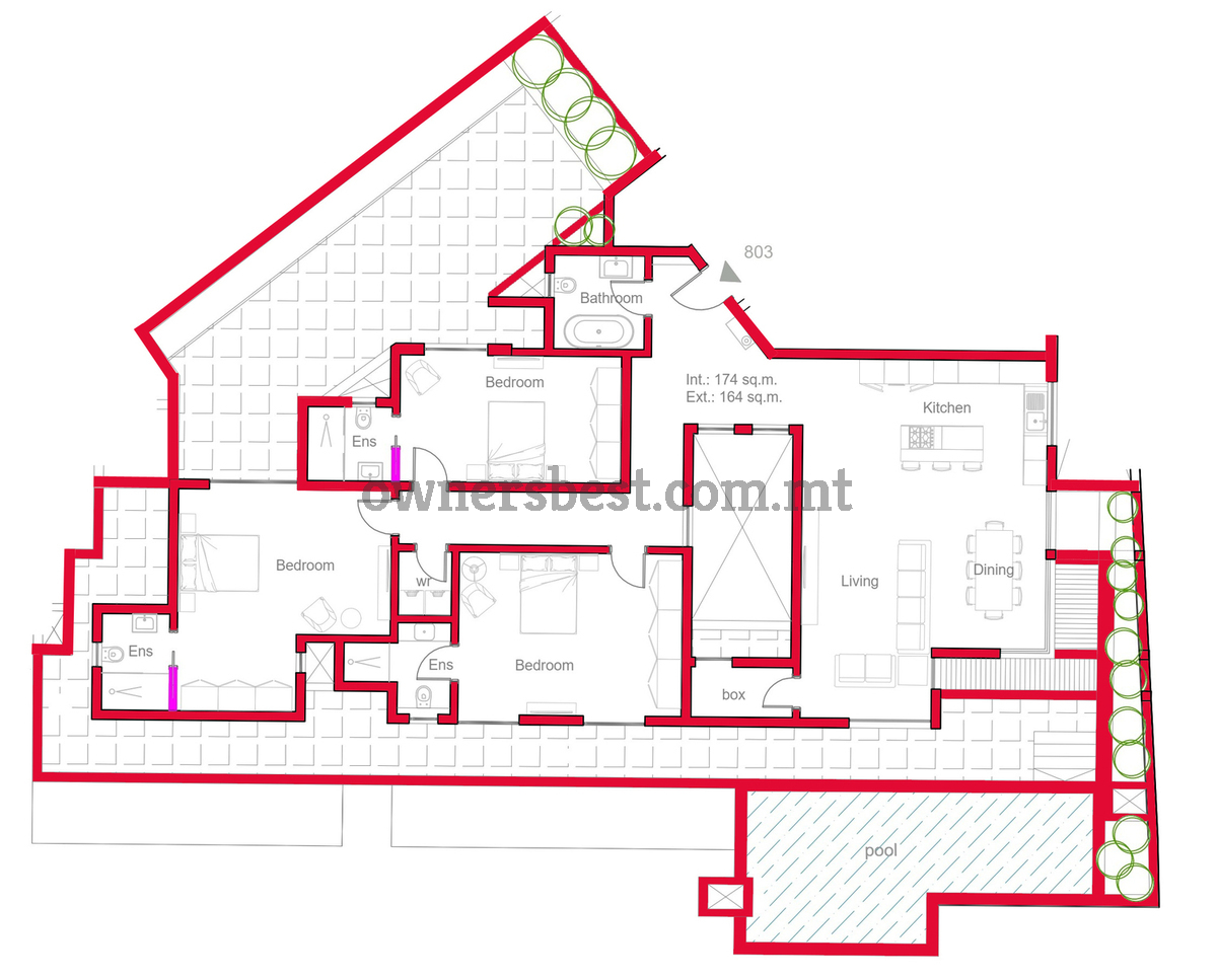 New on the market and already built is this PENTHOUSE situated in Gzira being sold in shell form with common parts ready. Property consists of an open plan kitchen/living/dining area, 3 bedrooms, 3 ensuites, boxroom and 1 bathroom. Complementing this property is a spacious terrace with pool.