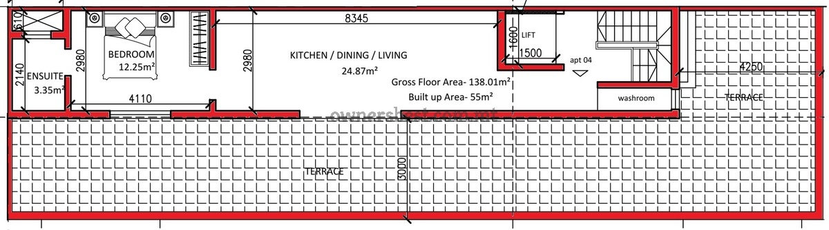 PENTHOUSE being sold shell. Layout consists of a very spacious open plan kitchen/living/dining area, 1 double bedroom, ensuite bathroom, corner terraced and a washroom. Freehold.