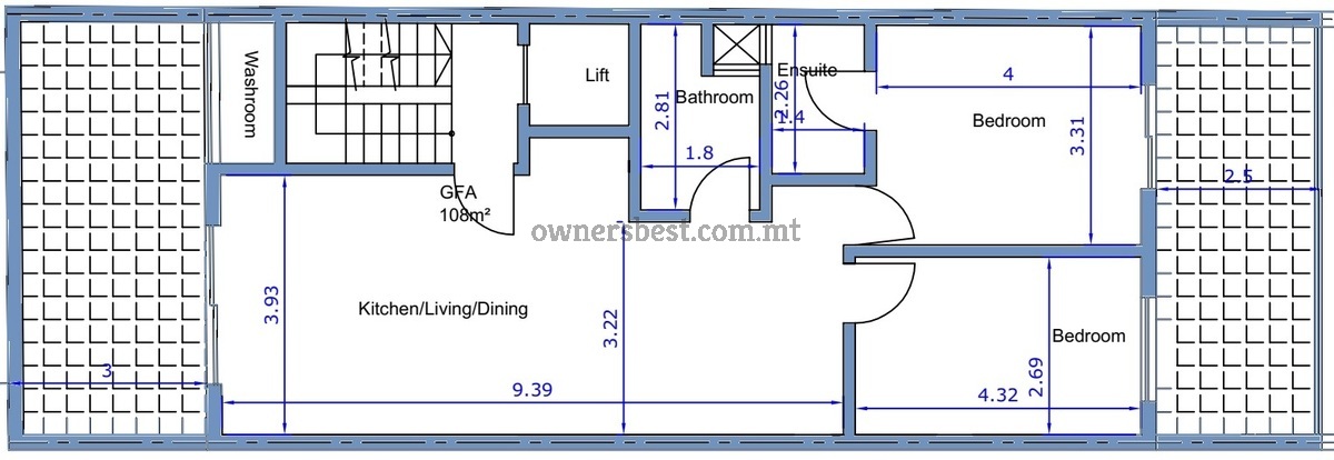ZABBAR - 2 BEDROOM PENTHOUSE. BLOCK OF 5 Property consists of an Open Plan Kitchen / Dining & Living Area, Front & back terrace, 3 Bedrooms, Ensuite, Main bathroom and a Washroom. To Be sold in shell Form. Optional garages