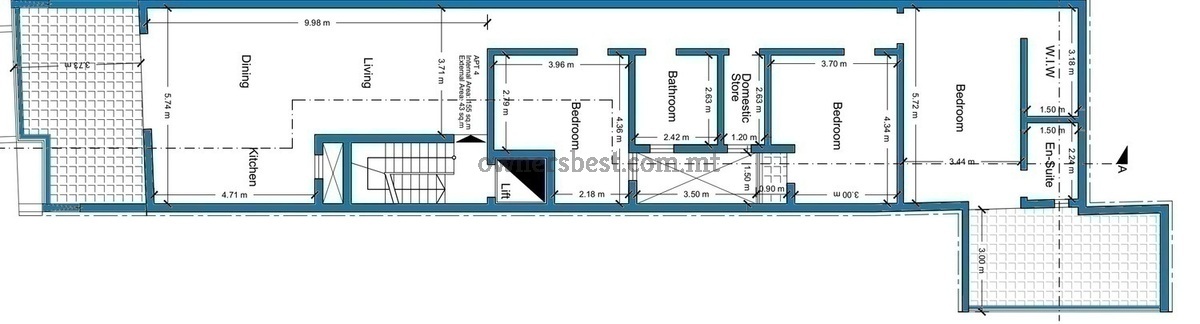 A large PENTHOUSE having a total area of 198sqm, 3 bedrooms, ensuite, walkin, large back terrace, boxroom, main bathroom and open plan kitchen/living/dining that gives out onto a large terrace. The penthouse also enjoys use of a communal pool shared within this block of 4. This is being sold finished including bathrooms but excluding internal doors. Optional garages available. Airspace included. Freehold.